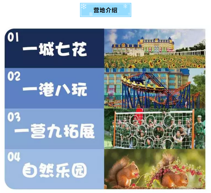 一個營地包含九種拓展,畢業墻、生死墻、孤島求生、機智團隊、艱苦歲月、信任背摔、穿越電網、斷橋探險、極速前進,在一望無際的高爾夫草坪上,上演著一幕一幕志勇闖關的戲碼。