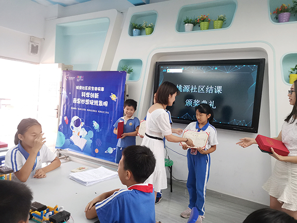 經過前三次課的講解和動手實踐,以及第四次課的微挑戰賽,主講老師結合孩子們的整體表現,選出了個人獎項和團體獎項,分別為他們證書和勵物資。