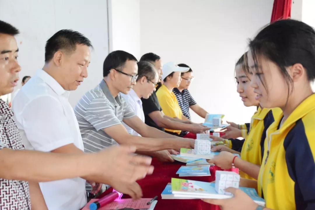 儀式上,聶老師與到場的嘉賓給同學們頒發了本次捐贈的物品:《玩轉發明》系列課本710本,創意魔方186個。他希望橫江橋中學的每一個學生都能敲開科學的大門,進入趣味發明的世界。