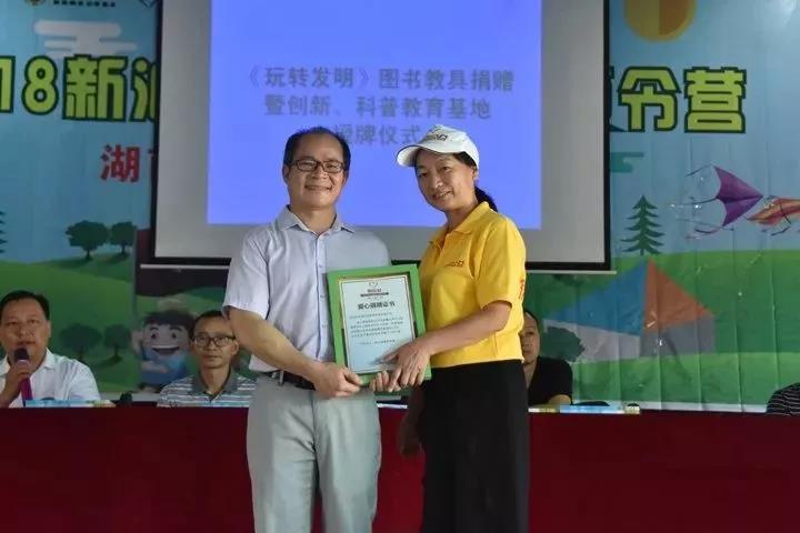 9月19日下午,深圳市奇思妙想教育科技有限公司(以下稱 奇思妙想)聯合湖南省微點公益服務中心、郴州市志愿者工作站,向湖南省懷化市橫江橋中學捐贈了880份《玩轉發明》的圖書、教具,并舉行了創新教育基地授牌儀式。