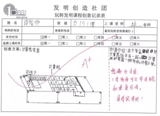 周俊伊同學的計算機筆盒,將筆盒和計算器相結合,將學習的主體附加創新法發揮的淋漓盡致,棒!