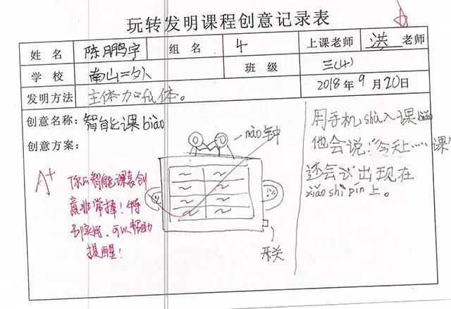 陳鵬宇同學(xué)站在大家的角度,想出了一種學(xué)生都適用的智能課表,通過(guò)手機(jī)輸入,到時(shí)間會(huì)自動(dòng)發(fā)出語(yǔ)音提示,告訴學(xué)生上什么課,需要拿出課本,非常方便!
