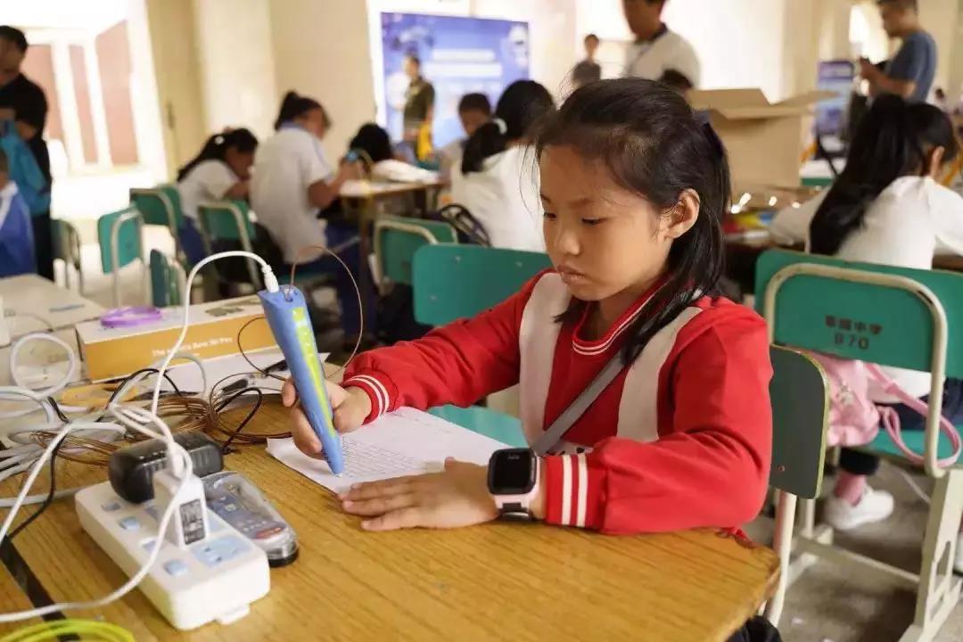 △景貝小學“小工匠”創客實踐室的“小創客”帶來了機器人、3D打印筆作品、小發明小創作作品、現場演示編程貓,還參與了現場3D打印筆比賽及機器人、車模、航模、VR虛擬現實、無人機等現場體驗活動