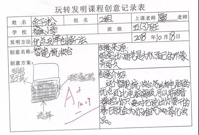 通過幾次的課程,孩子們的進步越來越大,從最初接觸課程時的懵懵懂懂,到現在能熟練運用我們的發明方法進行創造發明,孩子們的思維也慢慢的在轉變,小小發明家們都行動起來了。